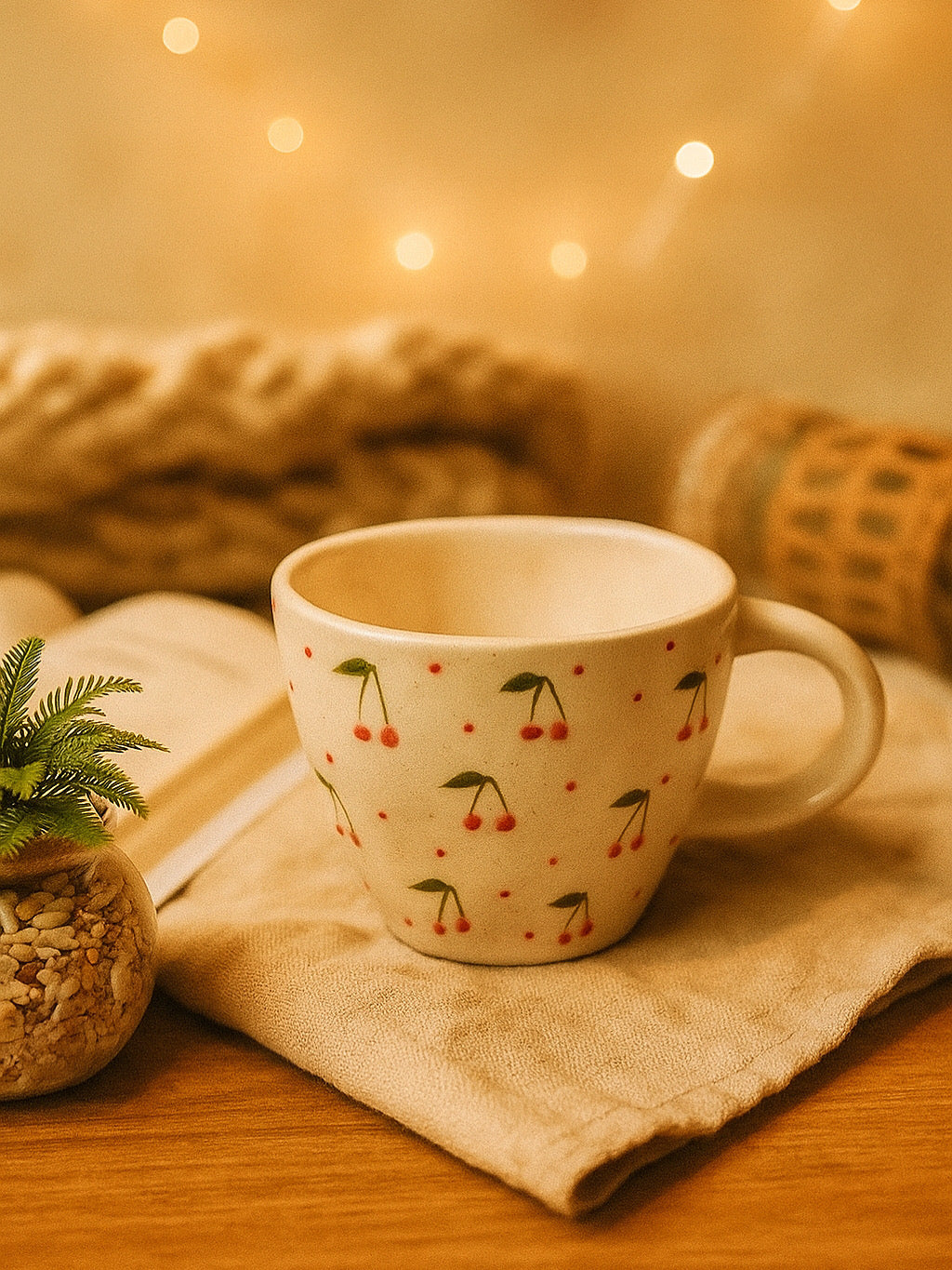 Beautifully Handcrafted Fresh Cherry designed coffee mugs for you, Looks so aesthetic and pure. These mugs will definitely give a kick to your home styling.